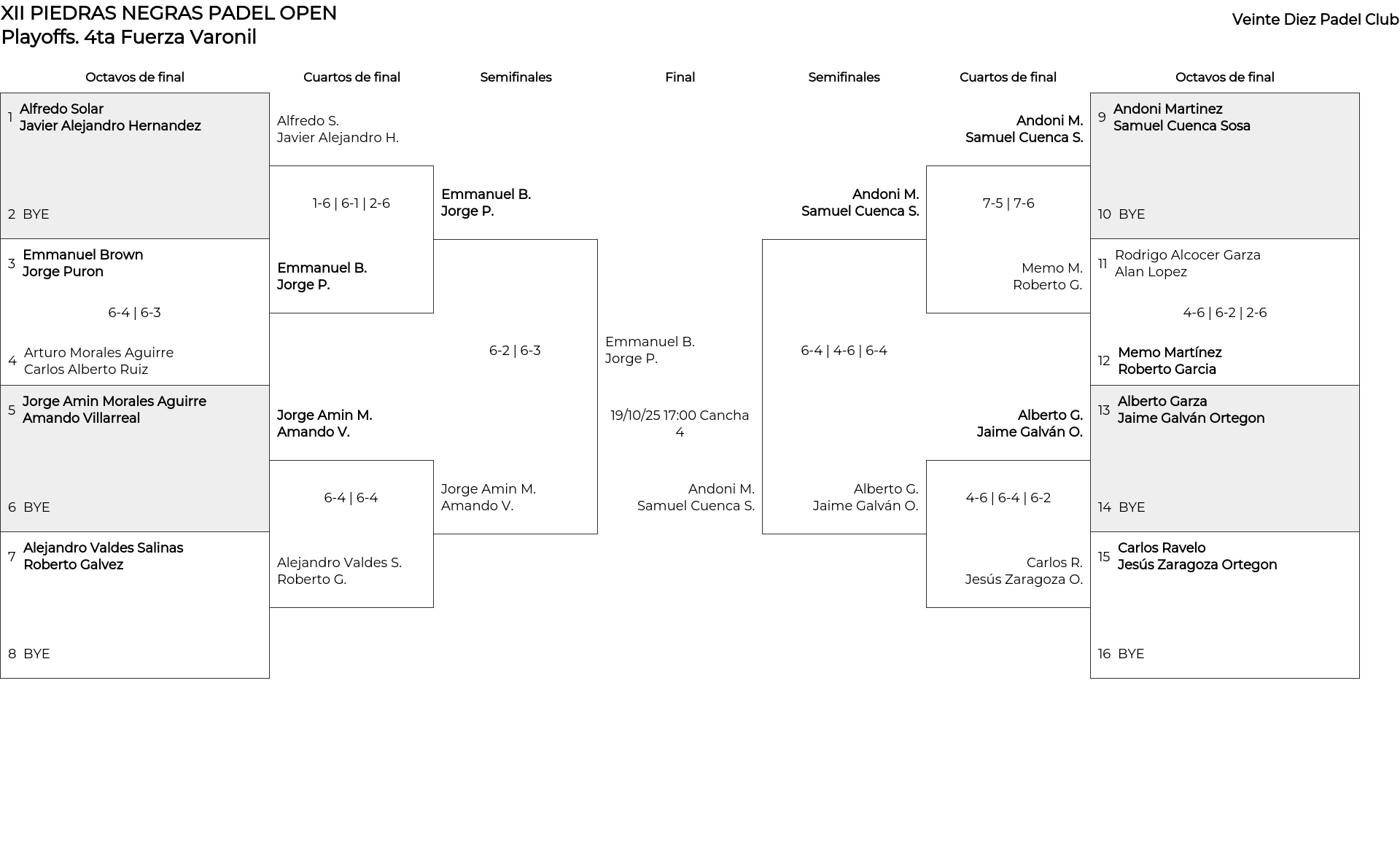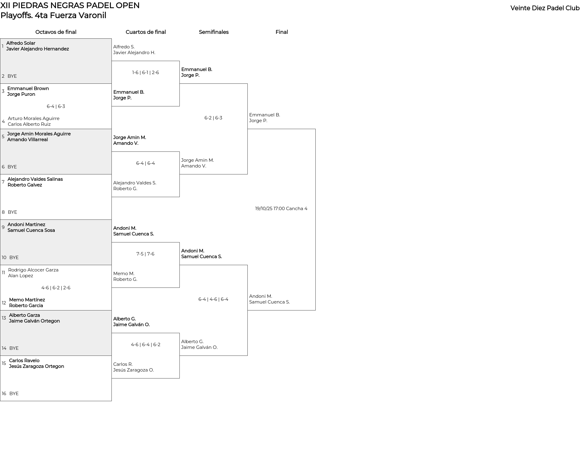 4ta Fuerza Varonil . Desde 16/10/2025 00:00 hasta 19/10/2025 23:30