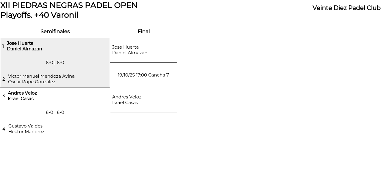 +40 Varonil . Desde 18/10/2025 00:00 hasta 19/10/2025 00:00